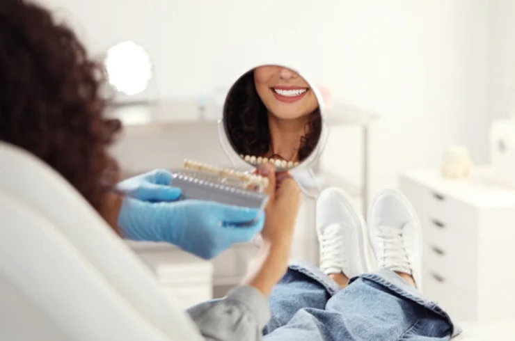 Veneers and laminates are thin, custom-made shells placed on the front surface of teeth. They are used to fix chipped, stained, or uneven teeth and improve the appearance of your smile. Made from durable materials like porcelain, they look natural and last long, providing a smooth, bright, and confident smile.